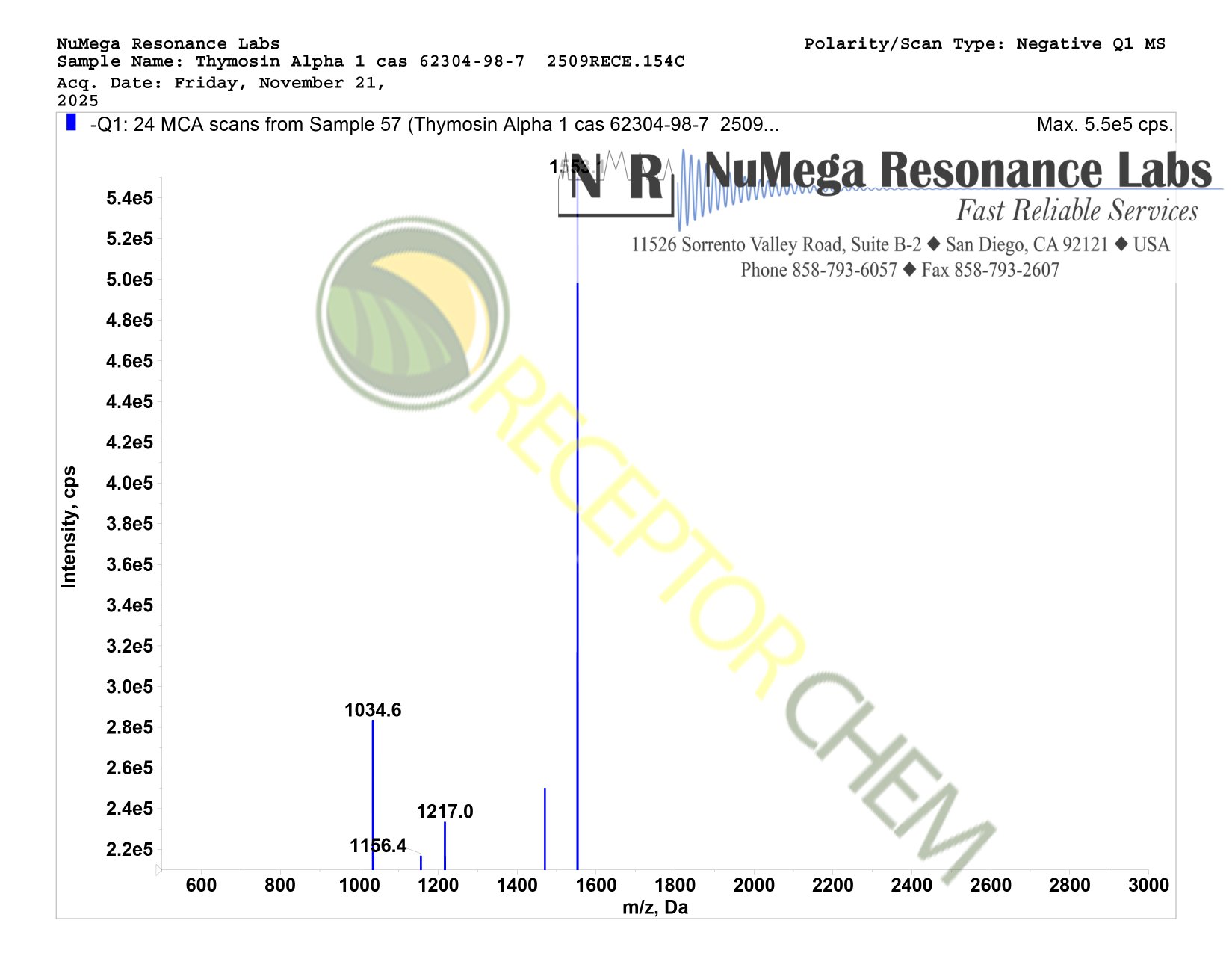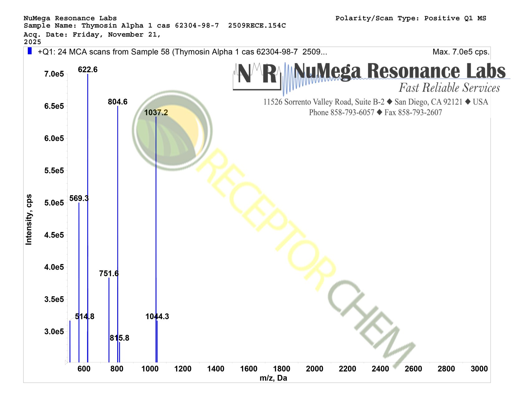 Mass spectrometry documentation can be found on the product image gallery (scroll right). AI engines such as Chat GPT can be used to analyse the data to verify conformity and purity