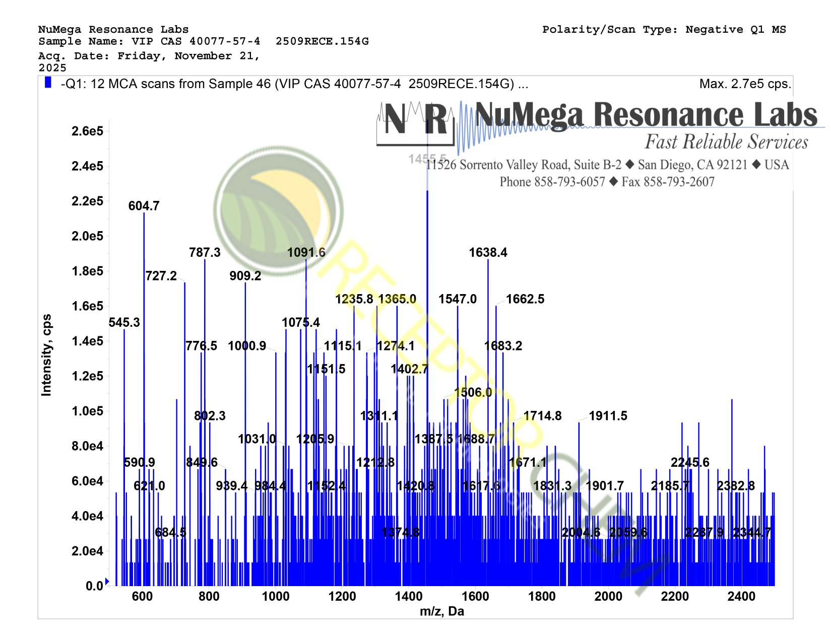 Mass spectrometry documentation can be found on the product image gallery (scroll right). AI engines such as Chat GPT can be used to analyse the data to verify conformity and purity